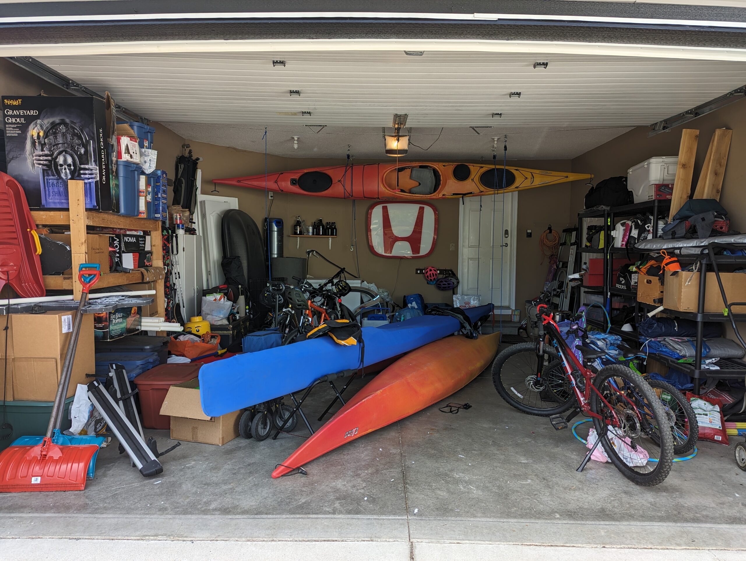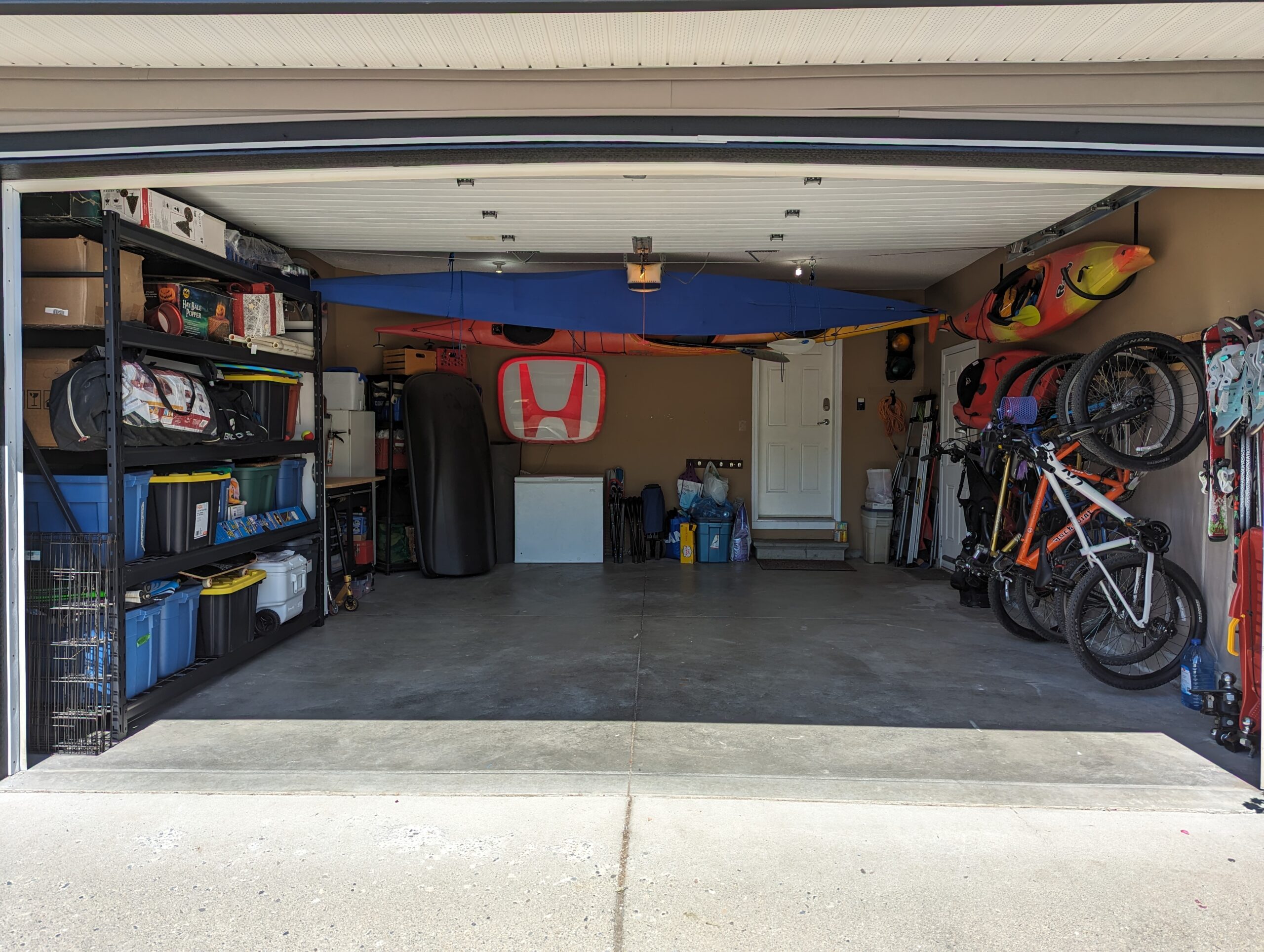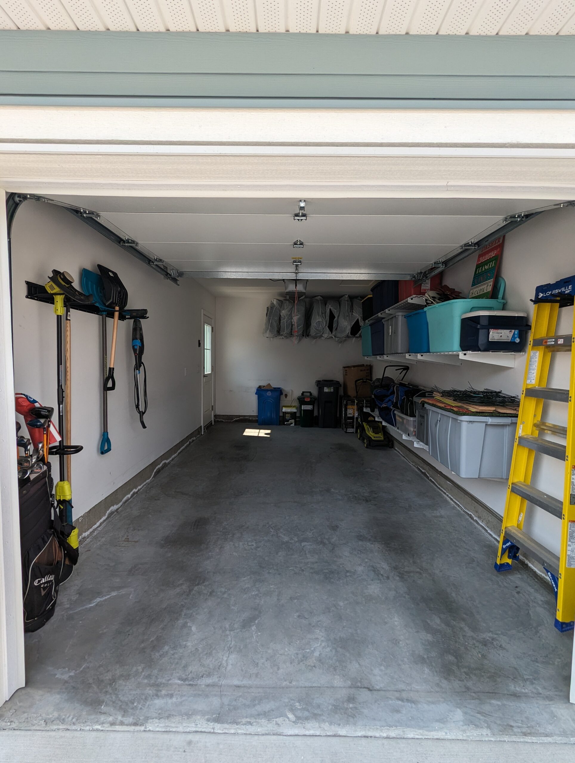 Here we did a garage organization that allowed the owner to park his vehicle in the garage once again. We hung the various sporting goods and made sure his general belongings like holiday decorations were neatly stored in bins.